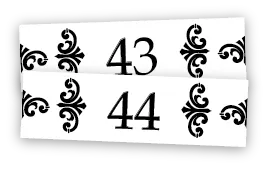 Trijų skirtingų dizainų dekoratyvinis numeravimas tiks visų tipų interjerams. Galite rinktis iš trijų stilių – „Rėmelis“, „Raštas“ ir „Flora“.